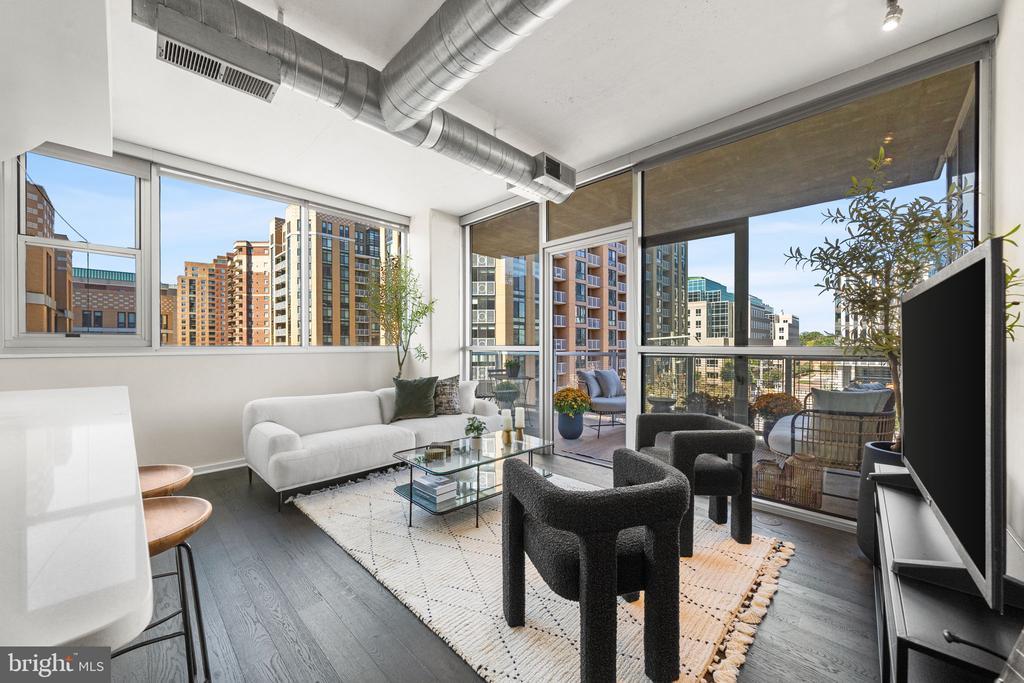 Tucked into the heart of Arlington’s Ballston-Virginia Square corridor, this condo in the desirable ARC 3409 building delivers polished metro living with no compromises. This two-bedroom, two-bath condo spans just over 1,000 square feet, but lives larger thanks to thoughtful design, walls of windows, and an open-concept layout for maximum flow. Interior finishes hit all the right notes including a sleek kitchen with flat-panel cabinetry, stainless steel appliances, and seated bar with quartz countertops that reflect the light. It opens seamlessly into the living area, where massive windows drench the space in natural light and private balcony access offers space for elegant entertaining. Spacious primary suite is anchored by a clean-lined en suite bath with tiled shower. Second bedroom, in-unit laundry and ample closet space make every inch of this home feel intentional. The desirable boutique building features concierge service, gym, and onsite parking, plus close proximity to local coffee shops, nightlife, greenspaces and Metro access. Find everything you’re looking for and more than you expect here, right where you want to be. Don’t miss the Open House Sat & Sun 1-4.